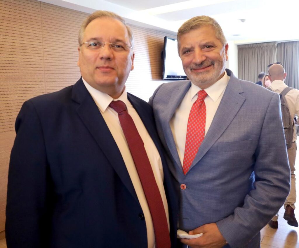 Τον Περιφερειάρχη υποδέχθηκε στο Συνέδριο ο Πρόεδρος του ΕΒΕΑ Γ. Μπρατάκος, τον οποίο ο κ. Πατούλης συνεχάρη για το έργο που κάνει τους τελευταίους μήνες ως νέος Πρόεδρος του Επιμελητηρίου, εξάροντας τη συμβολή του στη στήριξη των επιχειρήσεων αυτή τη πολύ δύσκολη περίοδο, αλλά και στη θεσμική ενδυνάμωση των Επιμελητηρίων.