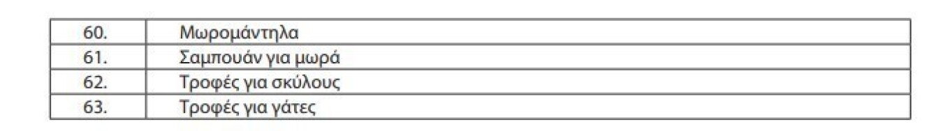Στον κατάλογο περιλαμβάνονται επίσης τροφές για σκύλους και γάτες.