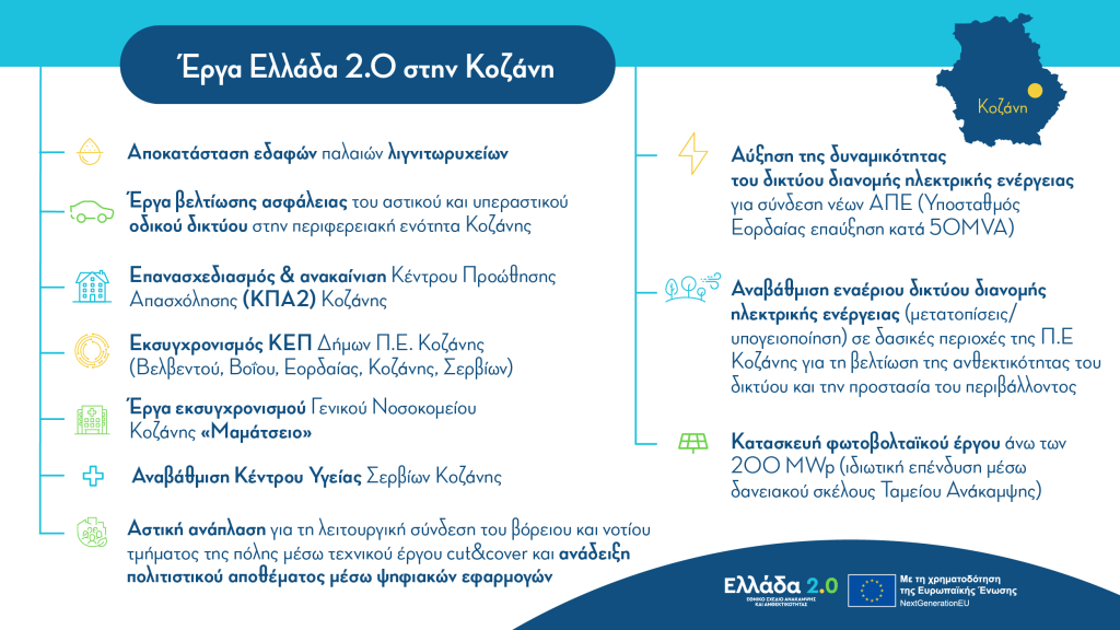 Ειδικά για το Εθνικό Σχέδιο Ανάκαμψης και Ανθεκτικότητας «Ελλάδα 2.0» είπε πως από τα 60 δισ. ευρώ που αναμένεται να κινητοποιήσει, περίπου 45 δισ. ευρώ θα αφορούν σε ιδιωτικές επενδύσεις. Αναφορικά με τη Δυτική Μακεδονία, εξήγησε πως λόγω της απολιγνιτοποίησης, έχει τη δυνατότητα και τα κίνητρα για να «φιλοξενήσει» το μεγαλύτερο μερίδιο, σε σχέση με το ΑΕΠ της, από αυτές τις ιδιωτικές επενδύσεις. «Σας διαβεβαιώνω ότι το ενδιαφέρον για την περιοχή είναι πάρα πολύ μεγάλο. Και δεν αφορά μόνο σε επενδύσεις φωτοβολταϊκών, αλλά και σε βαριές, βιομηχανικές και παραγωγικές επενδύσεις», πρόσθεσε ο κ. Σκυλακάκης, σημειώνοντας την ανάγκη να συνεχιστεί η στενή συνεργασία με την Περιφέρεια και με τους Δήμους, προκειμένου να αξιοποιηθούν, στο έπακρο, οι ευκαιρίες που ανοίγονται.