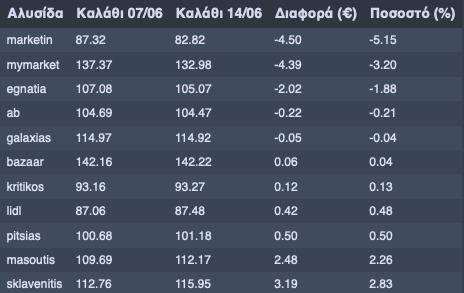 Ειδικότερα, κατά την 33η εβδομάδα εφαρμογής του «Καλαθιού» (14/6/2023-20/6/2023) και από 1.206 προϊόντα: