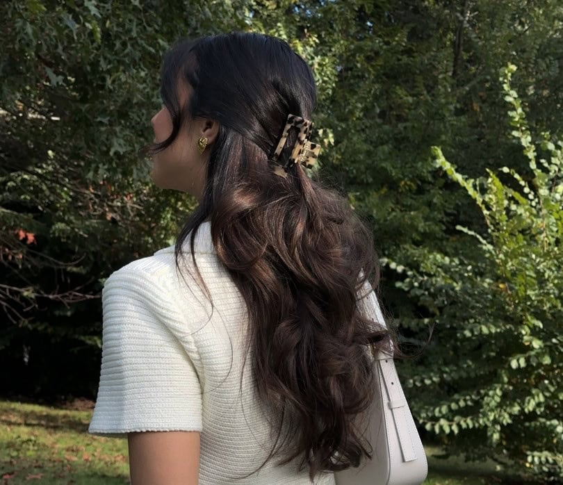 Εάν δεν είστε φαν των μεγάλων σε μέγεθος κλάμερ, μπορείτε κάλλιστα να χρησιμοποιήσετε κάποιο σε μικρό μέγεθος, που θα σας χαρίσει ένα πιο χαριτωμένο αποτέλεσμα. Αφήστε τα μαλλιά σας στη φυσική τους υφή, εάν είναι φυσικά σγουρά, ή δημιουργήστε μπούκλες, και πιάστε τα μισά πίσω με το μίνι hair clip σας.