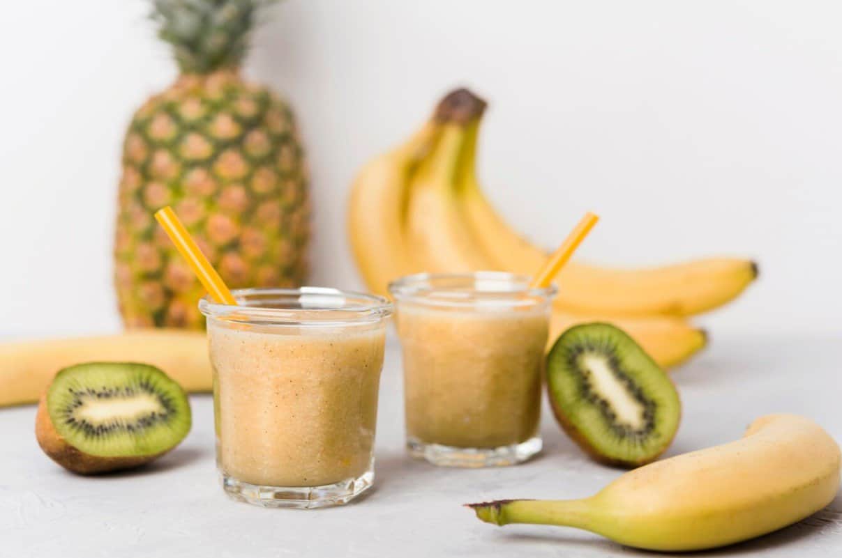 Εάν προτιμάτε κάτι πιο θρεπτικό πριν τον ύπνο, το smoothie με ακτινίδιο και μπανάνα μπορεί να είναι η ιδανική επιλογή. Οι μπανάνες είναι πλούσιες σε τρυπτοφάνη, μαγνήσιο, μελατονίνη, φυτικές ίνες και βιταμίνες B6 και C, ενώ τα ακτινίδια είναι πλούσια σε σεροτονίνη και φυτικές ίνες. Έρευνα του 2023 συνέδεσε την κατανάλωση ακτινιδίου με καλύτερο ύπνο στους αθλητές.