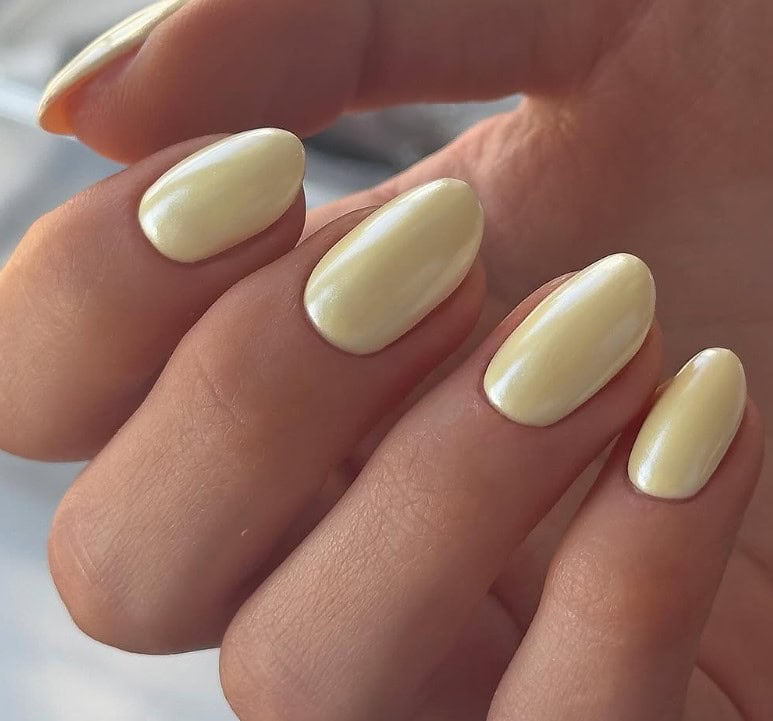 Σε μια απαλή ροζ ή μπεζ βάση, και πριν το βερνίκι στεγνώσει εντελώς, περνάτε με ένα πινέλο λίγη περλέ σκιά και την σταθεροποιείτε με ένα clear top coat. Το τελικό αποτέλεσμα δεν θα είναι τόσο γυαλιστερό όσο τα chrome nails που θα σας έκανε μια επαγγελματίας. Είναι, ωστόσο, ένας γρήγορος, εύκολος τρόπος να αποκτήσετε αυτό το nail look από την άνεση του σπιτιού σας.