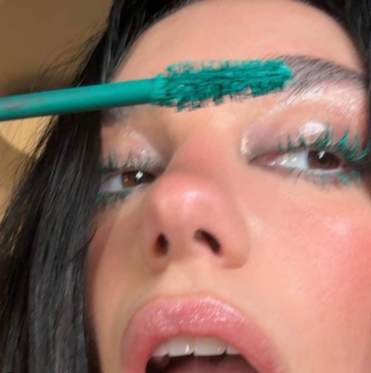 Μάλιστα, σε μια φωτογραφία φαίνεται να απλώνει μια πράσινη μάσκαρα χαρίζοντας εντυπωσιακή όψη στο βλέμμα της.