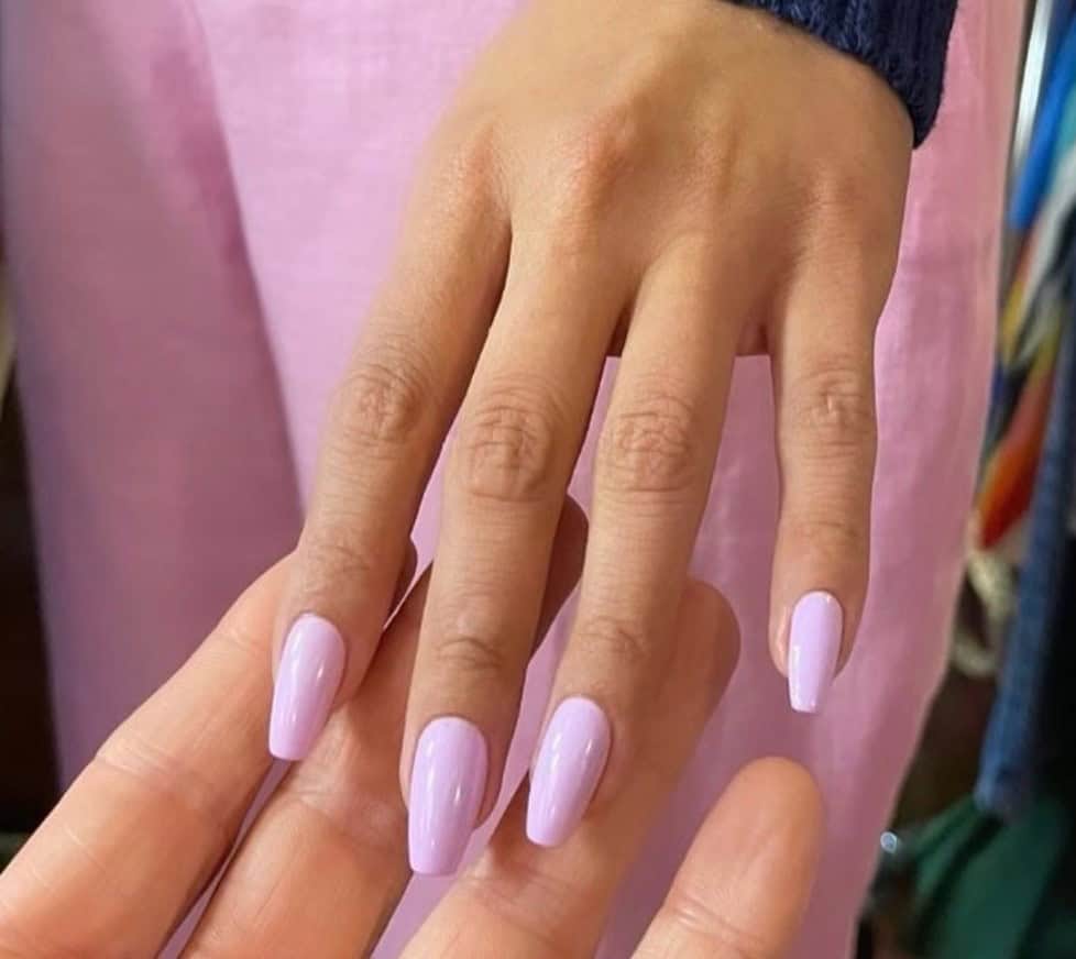 Και τώρα, στις αρχές της άνοιξης άπλωσε στα νύχια της την πιο γλυκιά lavender απόχρωση που θυμίζει γάλα λεβάντας και είναι μία από τις μεγαλύτερες τάσεις της σεζόν.