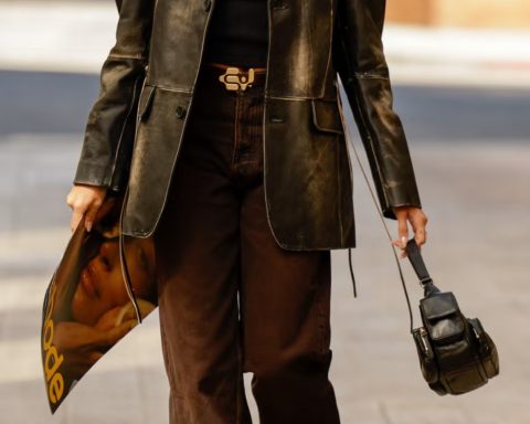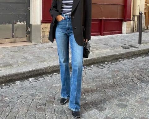 Ακολουθώντας την τάση της διαφάνειας, επέλεξε μια μαύρη μπλούζα από διάσημο οίκο, από λεπτό μετάξι με tie-neck λεπτομέρεια, φορεμένη πάνω από ένα ταιριαστό cami τοπ. Το συνδύασε με μαύρο bootcut denim και πρόσθεσε sculptural αξεσουάρ: τις χαρακτηριστικές γόβες και τη μικρή εντυπωσιακή τσάντα.