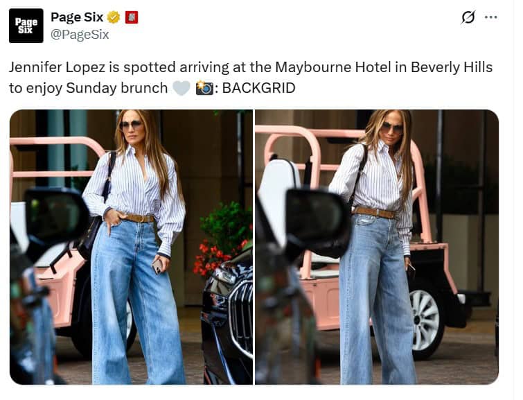 Συγκεκριμένα, η Jlo εθεάθη να φτάνει στο ξενοδοχείο Maybourne στο Μπέβερλι Χιλς για να απολαύσει το κυριακάτικο brunch της και οι στιλιστικές της επιλογές ήταν σκέτη έμπνευση.