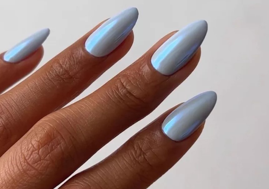Η εξέλιξη του glazed donut trend είναι εδώ και έχει το χρώμα του πάγου. Αυτό το μεταλλικό γαλάζιο μανικιούρ συνδυάζει την απόλυτη φρεσκάδα με μια διακριτική πολυτέλεια, αποτελώντας την πιο in πρόταση για όσες θέλουν να ξεφύγουν από τα συνηθισμένα παστέλ.