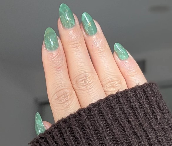 Τα jade nails είναι αυτή τη στιγμή ένα από τα πιο δυνατά trends στο manicure. Το αποτέλεσμα θυμίζει την όψη της πέτρας με πράσινες μαρμάρινες αποχρώσεις και milky υφή, δημιουργώντας ένα look που δείχνει ταυτόχρονα περιποιημένο και φυσικό. Είναι από εκείνα τα σχέδια που δεν είναι υπερβολικά έντονα, αλλά τραβούν το βλέμμα.