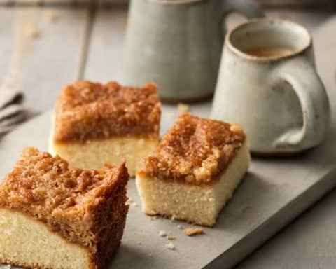 Αδειάζουμε το μείγμα σε ένα ταψί, που πριν έχουμε περάσει με λάδι και αλεύρι και ψήνουμε σε προθερμασμένο φούρνο, στους 170-180 βαθμούς, στον αέρα, για περίπου 40-45 λεπτά.