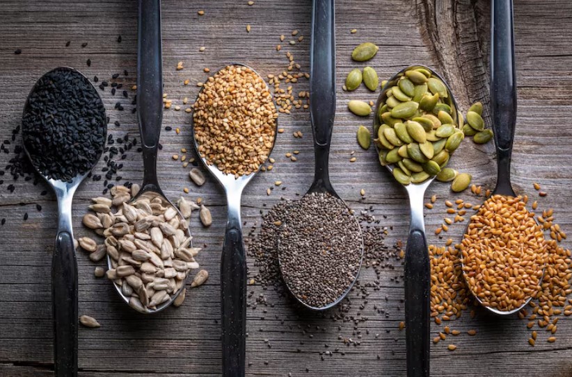 Οι σπόροι, όπως οι σπόροι chia, οι λιναρόσποροι και οι σπόροι κολοκύθας, είναι «διατροφικές βόμβες». Εκτός από μαγνήσιο, περιέχουν και ωμέγα-3 λιπαρά οξέα, τα οποία είναι γνωστά για τις καρδιοπροστατευτικές τους ιδιότητες. Επίσης, οι σπόροι chia περιέχουν αντιοξειδωτικά που προστατεύουν την καρδιά και ενισχύουν τη γενική υγεία.