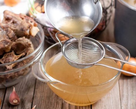 Ένας από τους πιο αποτελεσματικούς τρόπους για να πάρετε κολλαγόνο από τη διατροφή σας. Παρασκευάζεται με πολύωρο σιγοβράσιμο οστών από κοτόπουλο, μοσχάρι, ψάρι ή χοιρινό, διαδικασία που απελευθερώνει κολλαγόνο και άλλα πολύτιμα θρεπτικά συστατικά. Αποτελεί εξαιρετική βάση για σούπες, σάλτσες και μαγειρευτά.