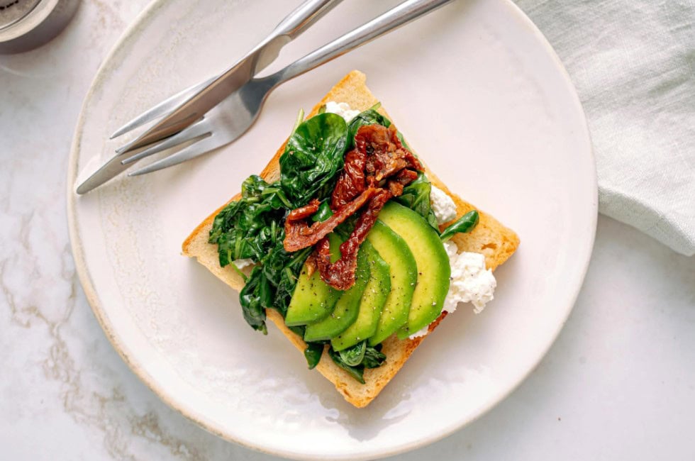 Ανοιχτό σάντουιτς με φέτα, αβοκάντο και κολοκυθόσπορο