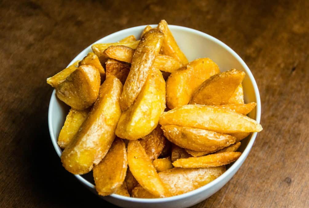 Το μυστικό δεν είναι η μαγειρική σόδα, όπως συνηθίζουν πολλοί, αλλά το σιμιγδάλι, που δίνει στις πατάτες αυτή την ξεχωριστή τραγανότητα.