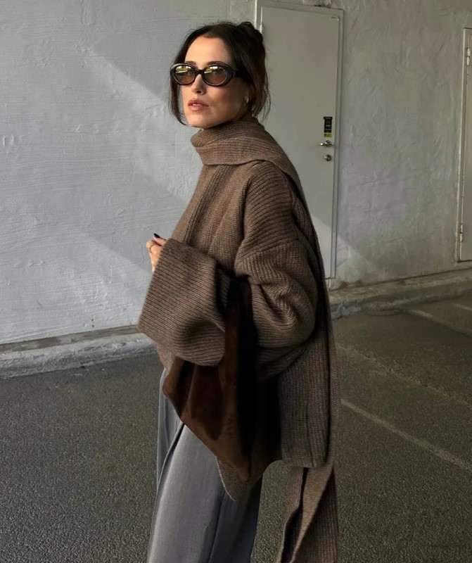Οι fashion insiders αγαπούν τα scarf sweaters γιατί μετατρέπουν ακόμη και το πιο απλό denim ή το πιο basic μαύρο παντελόνι στο λεπτό σε σύνολο που θυμίζει ήσυχη, ανεπιτήδευτη πολυτέλεια. Κι επειδή το trend εμφανίζεται πλέον παντού, η επιλογή γίνεται σχεδόν ακαταμάχητη.