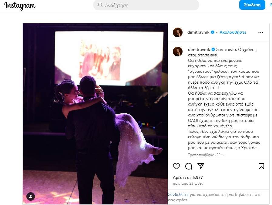Τέλος, δεν έχω λόγια για το πόσο ευλογημένη νιώθω για τον άνθρωπο μου που με νοιάζεται σαν τους γονείς μου και με αγαπάει όπως ο Χριστός», τόνισε, καταλήγοντας, η Δήμητρα Βαμβακούση.
