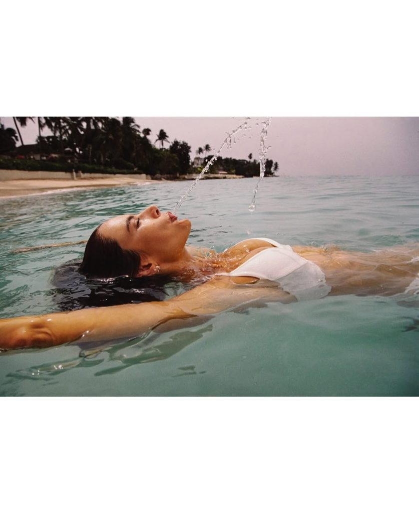 Συγκεκριμένα, πόζαρε με ένα μικροσκοπικό μπικίνι στην παραλία, ενώ σε μερικά στιγμιότυπα εμφανίζεται και topless, καλύπτοντας το στήθος της με τα χέρια της.