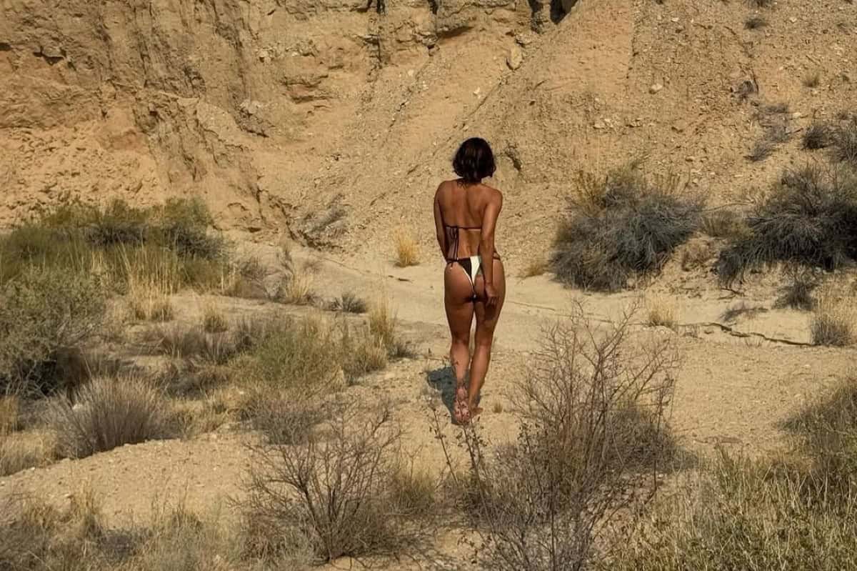 Στο στιγμιότυπο η γνωστή ηθοποιός φαίνεται να ποζάρει με ένα αποκαλυπτικό μπικίνι, περπατώντας ξυπόλητη σε έρημο τοπίο και με γυρισμένη με την πλάτη στον φακό.
