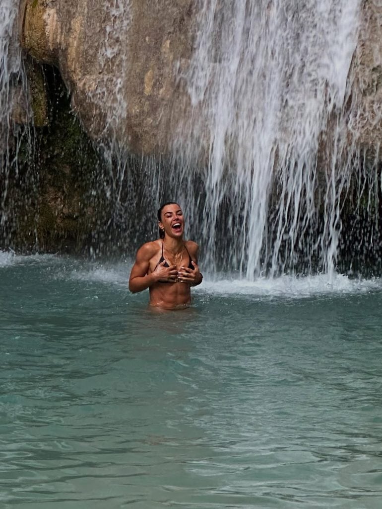 Ειδικότερα, η Ειρήνη Παπαδοπούλου σε μερικά από τα στιγμιότυπα πόζαρε με φόντο τους καταρράκτες, φορώντας ένα μαύρο μπικίνι και στη συνέχεια δημοσίευσε ορισμένες φωτογραφίες από τη διαδρομή στον προσωπικό της λογαριασμό στο Instagram.