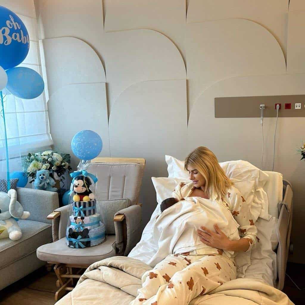 Συγκεκριμένα, δημοσίευσε μερικά στιγμιότυπα μέσα από το νοσοκομείο στον προσωπικό της λογαριασμό στο Instagram, στα οποία φαίνεται η ίδια να κρατάει στην αγκαλιά της το παιδί της αλλά και το αποτύπωμα από το πατουσάκι του γιου της.