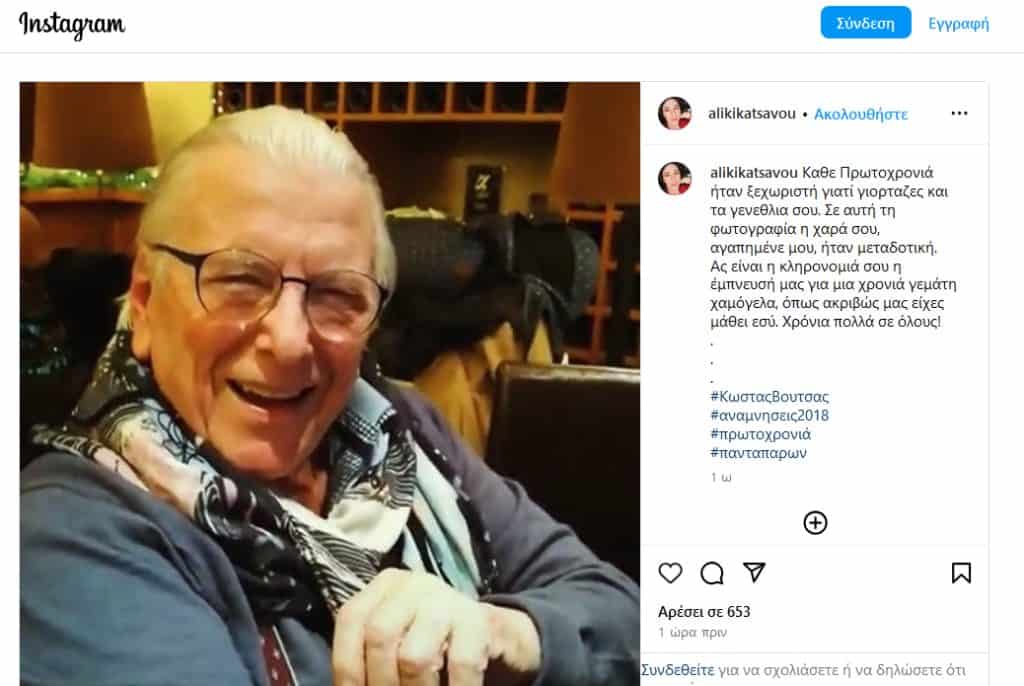 Ο Κώστας Βουτσάς γιόρταζε τα γεννέθλιά του παραμονή πρωτοχρονίας. Η τελευταία σύζυγος του θρυλικού ηθοποιού, Αλίκη Κατσαβού, η οποία του χάρισε τον μικρότερο γιο του, Φοίβο, έκανε μία πολύ συγκινητική ανάρτηση στον προσωπικό της λογαριασμό στο Instagram.