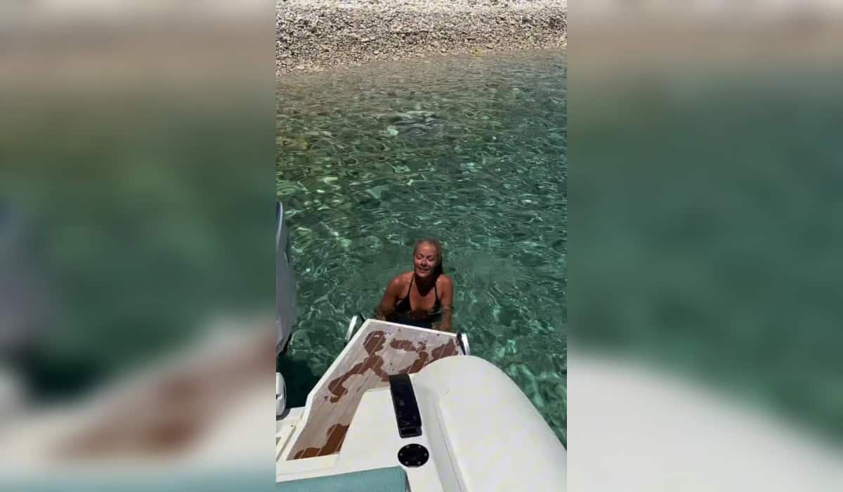 Στο βίντεο που μοιράστηκε η ηθοποιός και παρουσιάστρια με τους followers της στο Instagram, φαίνεται να βουτά από ένα σκάφος στη θάλασσα και να απολαμβάνει τα καταγάλανα νερά του νησιού, φορώντας ένα μαύρο μπικίνι.