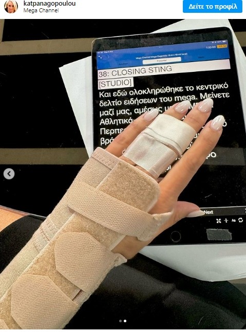 Μάλιστα, στην ανάρτησή της στο Instagram, δημοσιεύει και φωτογραφία με το χέρι της στον νάρθηκα.