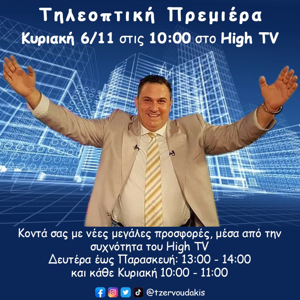 Νέα τηλεοπτική πρεμιέρα για τον Θεοδόση Ζερβουδάκη αυτή την Κυριακή 6/11 και καθημερινά κοντά σας και από την συχνότητα του High Tv