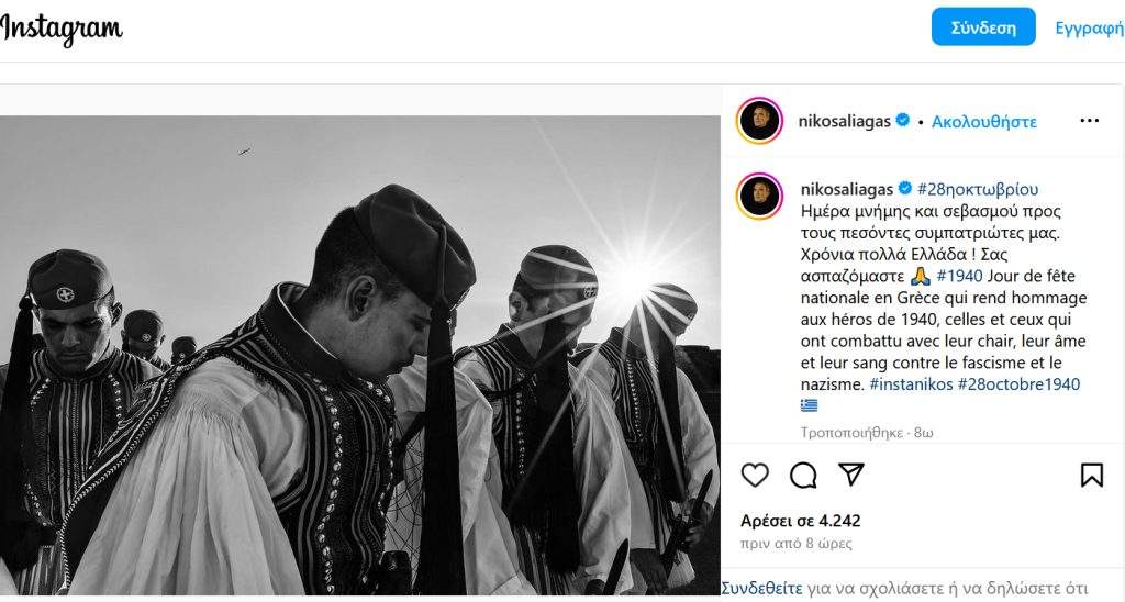 Ο Νίκος Αλιάγας τίμησε την μεγάλη γιορτή της 28ης Οκτωβρίου με ένα ξεχωριστό μήνυμά του στα social media.