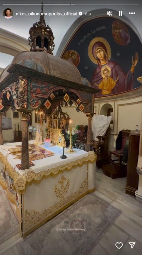 Τα ξημερώματα της Κυριακής του Πάσχα, μάλιστα ο τραγουδιστής Νίκος Οικονομόπουλος δημοσίευσε στα social media στιγμιότυπο από την επίσκεψή του σε μοναστήρι του νησιού.