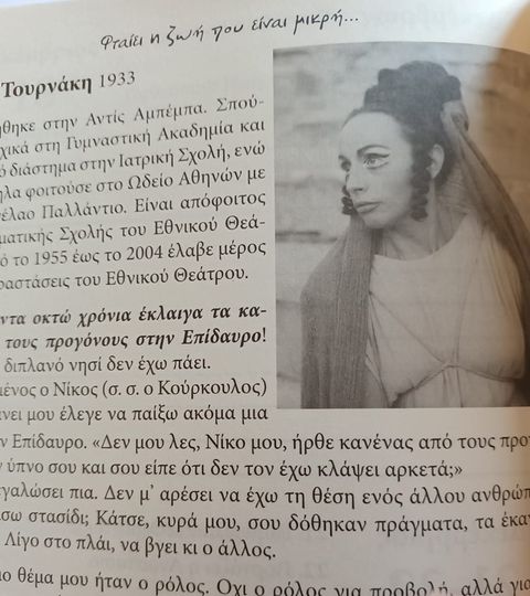 Στο αρχαίο δράμα, μέχρι το 1958 συμμετείχε στο Χορό (Εκάβη, Κλυταιμνήστρα, Ιφιγένεια εν Αυλίδι κ.ά.), το 1959 προήχθη σε Κορυφαία (Ορέστεια, Βάτραχοι-Κύκλωψ κ.ά.), ενώ από το 1968 άρχισε να ερμηνεύει ρόλους (Μήδεια, Ευρυδίκη κ.ά.) και από το 1971 ερμήνευε πρωταγωνιστικούς ρόλους (Ηλέκτρα, Ανδρομάχη, Εκάβη κ.ά.).