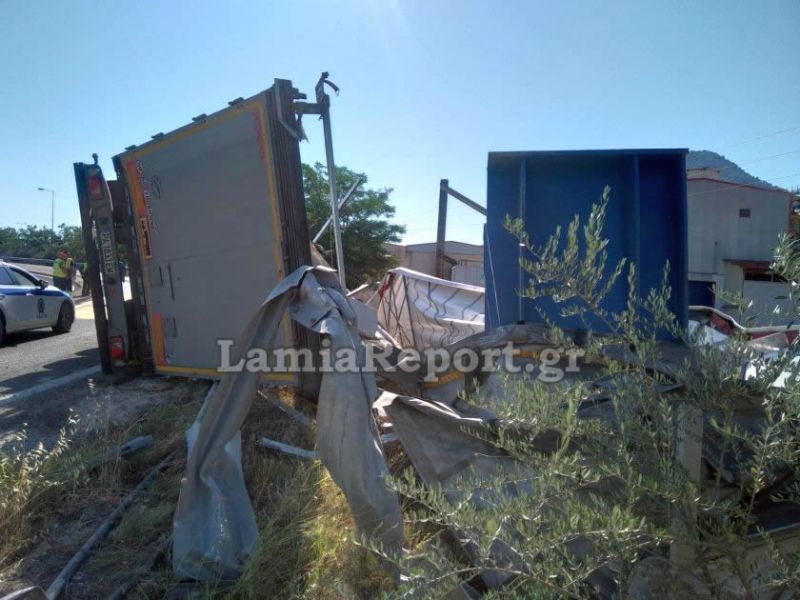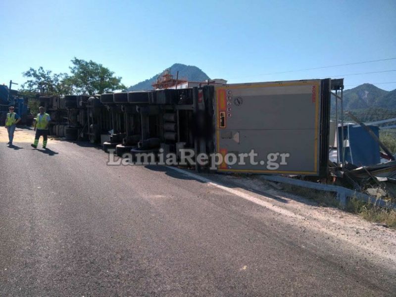Μία νταλίκα ανατράπηκε σήμερα το πρωί στην έξοδο του Αγίου Κωνσταντίνου, στη Φθιώτιδα.
