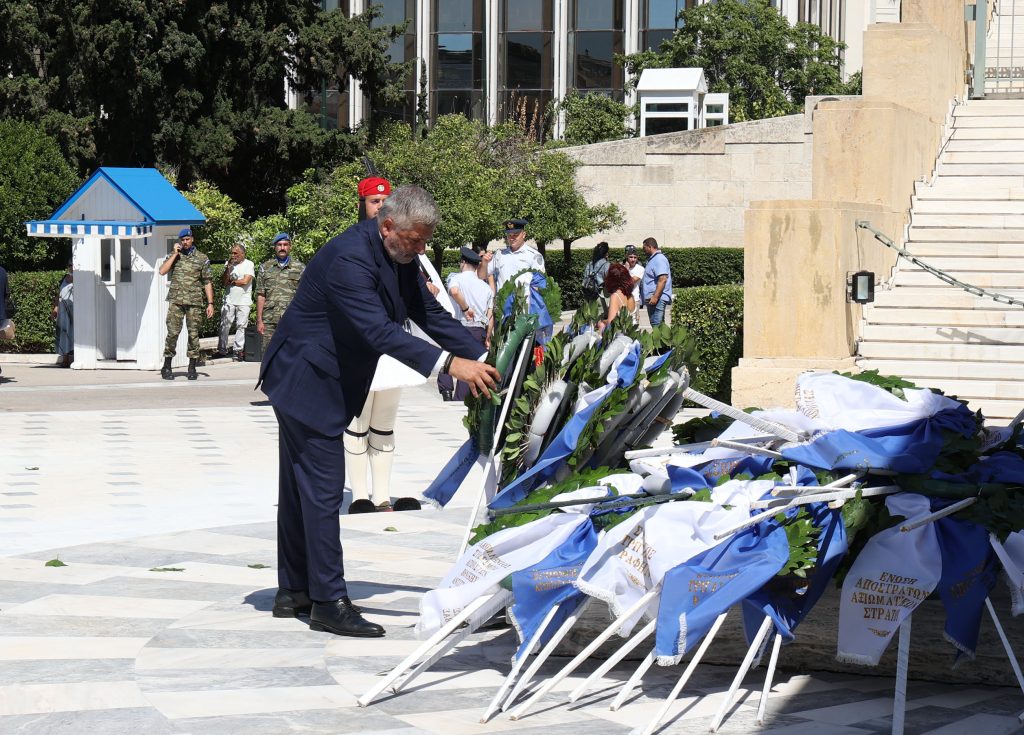 Στη συνέχεια πραγματοποιήθηκε πορεία, παρουσία τιμητικού αγήματος προς το Μνημείο του Άγνωστου Στρατιώτη, όπου και έγινε κατάθεση στεφάνων από τους επισήμους.