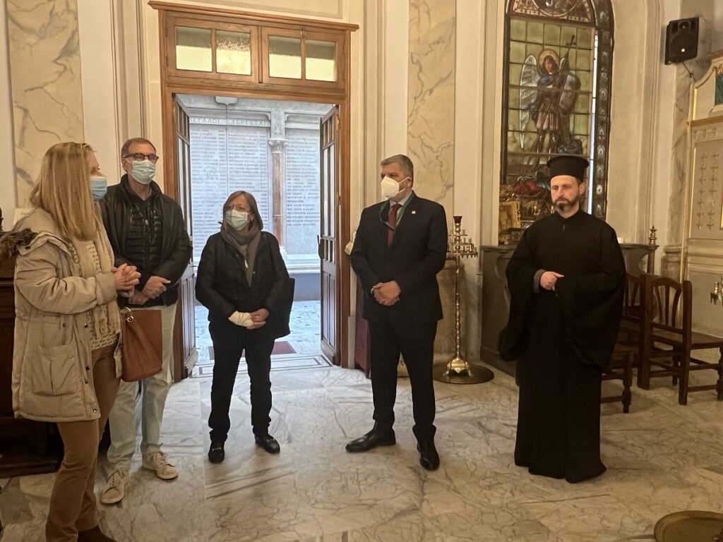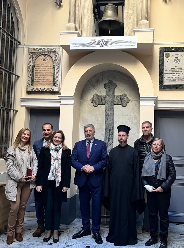 Ο Γ. Πατούλης επισκέφθηκε τον Ελληνορθόδοξο Ιερό Ναό της Κοιμήσεως της Θεοτόκου στον οποίο και βαπτίστηκε ο Παύλος Μελλάς. Εκεί ξεναγήθηκε από τον Ιερατικό Προϊστάμενο του ναού π. Εφραίμ. Ο κ. Πατούλης ενημερώθηκε για την ιστορία ενός από τους πλέον εμβληματικούς ναούς της Ελληνικής Διασποράς στην Ευρώπη, που λειτουργεί ανελλιπώς από το 1820 και στον οποίο υπηρετούσε μέχρι πρότινος ο νυν Μητροπολίτης Γαλλίας κ. Δημήτριος. «Η Ορθόδοξη πίστη αποτελεί συστατικό της εθνικής ταυτότητας των Ελλήνων, σε όποιο σημείο του πλανήτη και αν βρεθούν» είπε χαρακτηριστικά ο Περιφερειάρχης Αττικής και πρόσθεσε: «είναι συγκινητικό να βρίσκεσαι σε έναν ιερό χώρο που είναι συνυφασμένος με την ιστορία του νεότερου Ελληνισμού. Εδώ που βαπτίστηκε ο μεγάλος αγωνιστής Παύλος Μελλάς, έναν χώρο που απηχεί τη λάμψη της ελληνικής κοινότητας της Μασσαλίας και την προσφορά της στον πολιτισμό, την οικονομία και την πρόοδο όχι μόνο της Ελλάδας, αλλά και της Γαλλίας».