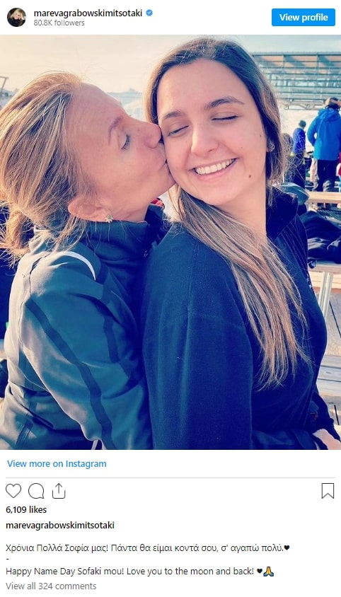 Η Σοφία Μητσοτάκη έχει την ονομαστική της γιορτή και η μητέρα της, Μαρέβα Γκραμπόφσκι δεν παρέλειψε να αναρτήσει μια φωτογραφία με ένα τρυφερό εορταστικό μήνυμα.