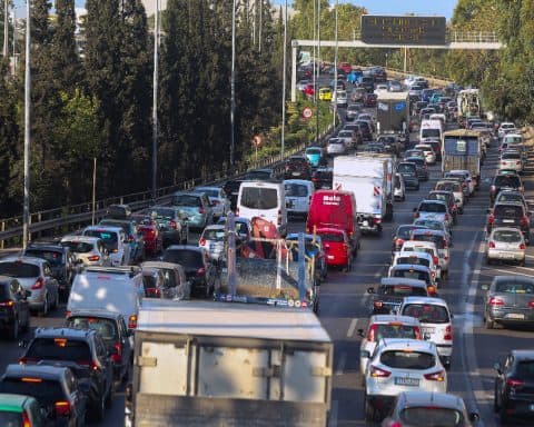 Το όχημα του δήμου βρισκόταν στο ρεύμα από Κερατέα προς Καλύβια, με αναμμένους τους ειδικούς φάρους και τα αλάρμ.