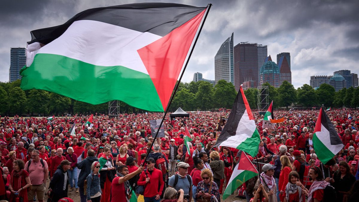 Δεκάδες χιλιάδες διαδηλωτές κατέκλυσαν τη Χάγη σήμερα, ζητώντας από την ολλανδική κυβέρνηση να υιοθετήσει μια σκληρότερη στάση απέναντι στον πόλεμο του Ισραήλ στη Γάζα.