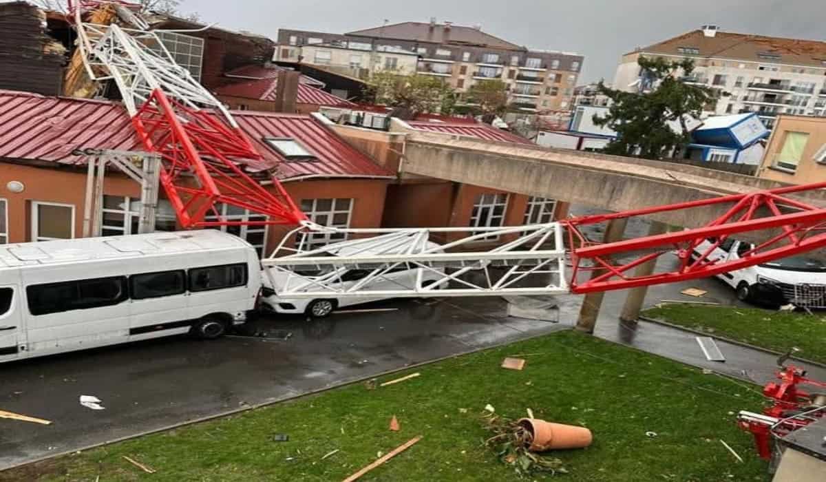 #Últimahora 🚨 Un fallecido y al menos 9 heridos por el paso de un #tornado en #Ermont, al norte de #París. Varias grúas de grandes dimensiones han colapsado en un área residencial.#Francia #France pic.twitter.com/GcvBEJnZAk