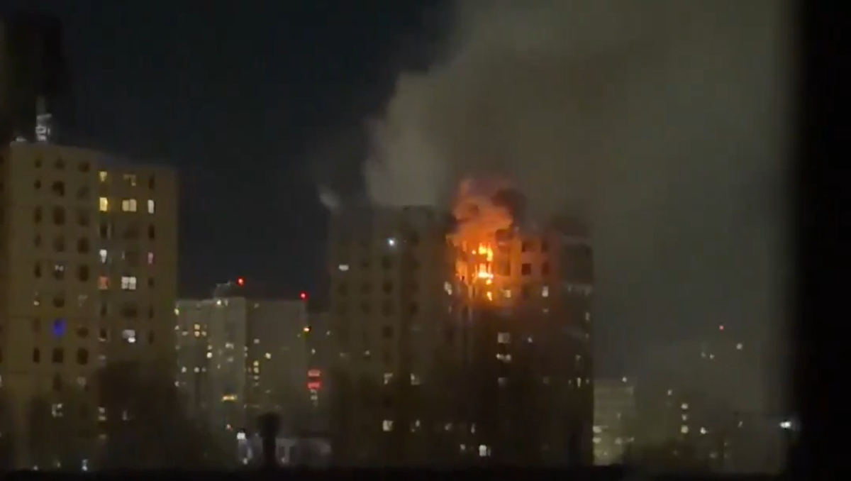 Σε βίντεο φαίνονται οι φλόγες να κατακλύζουν μέρος των τελευταίων ορόφων του κτηρίου.