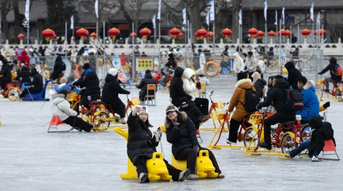 Το παγοδρόμιο του Πάρκου Λανσάν με θέα στο ηλιοβασίλεμα καλύπτει περίπου μία έκταση εμβαδού 8.000 τετραγωνικών μέτρων, με τον αριθμό των τουριστικών επισκέψεων ν’ αυξάνεται μετά από τον φετινό εορτασμό του Φεστιβάλ της Άνοιξης, τον προηγούμενο μήνα.