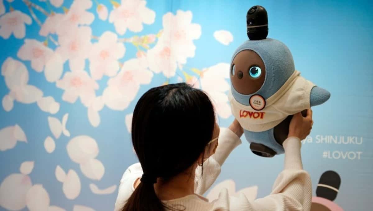 Το ρομπότ, με το όνομα LOVOT, έστριβε το κεφάλι του, ανοιγοκλείνοντας τα εκφραστικά μάτια του και εκτείνοντας τα χέρια του αποζητώντας μία αγκαλιά.