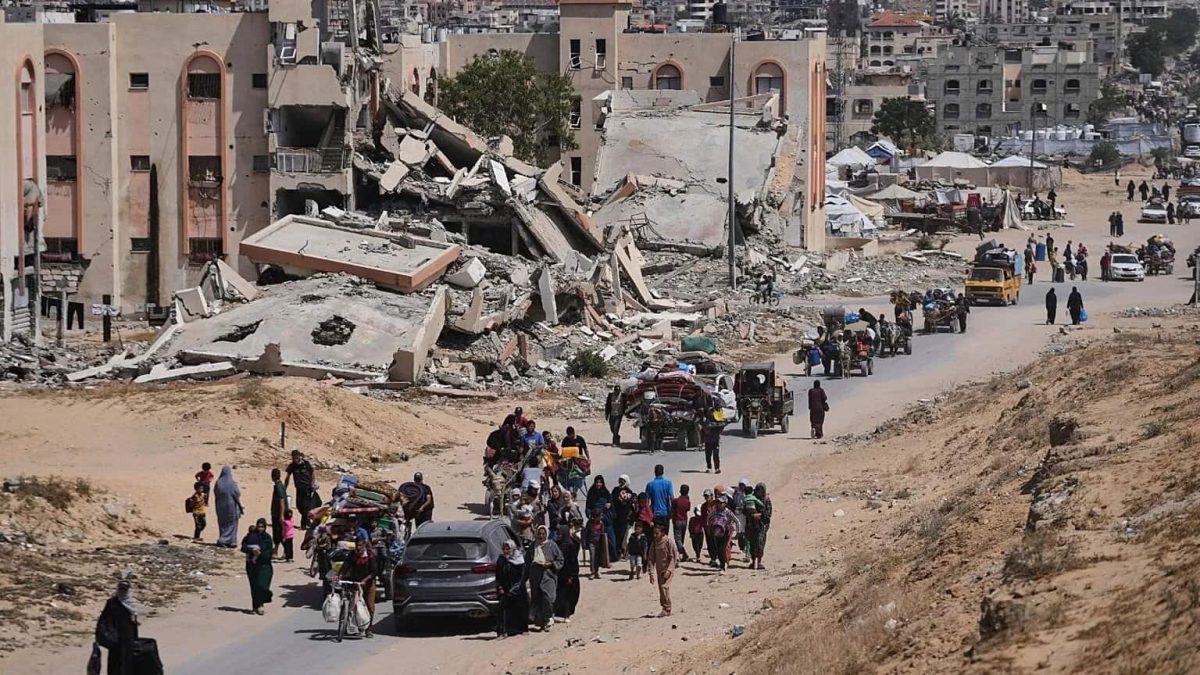 Σε έναν σκονισμένο δρόμο ανάμεσα στα ερείπια μια συνεχής ροή ανθρώπων που απομακρύνονται από την πόλη της Γάζας και κατευθύνονται προς τον νότο: κάποιοι στοιβαγμένοι σε φορτηγάκια ή κάρα, άλλοι με τα πόδια κρατώντας στα χέρια τους τσάντες ή μικρά παιδιά.