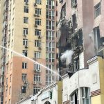 Πυκνός μαύρος καπνός βγαίνει από το πλοίο, το οποίο έχει πάρει κλίση.