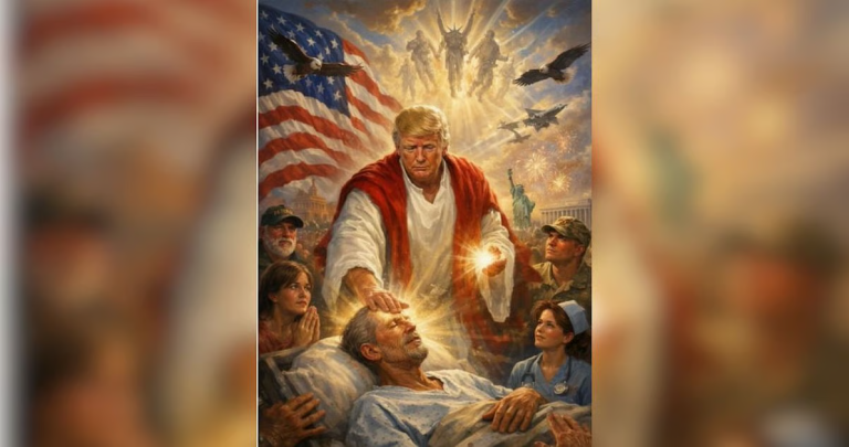 Στη φωτογραφία που δημοσίευσε ο Αμερικανός πρόεδρος στην πλατφόρμα του Truth Social, απεικονίζεται ο ίδιος σε μορφή που παραπέμπει στον Χριστό, να «θεραπεύει». Είναι ντυμένος με παπικά χρώματα, ενώ η αμερικανική σημαία φαίνεται πάνω από τον ώμο του.