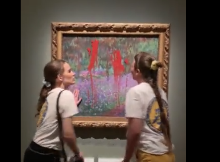 Τη 14η Ιουνίου του 2023, δύο νεαρές γυναίκες βούτηξαν τα χέρια τους μέσα σε κόκκινη μπογιά προτού την απλώσουν στον πίνακα «Ο κήπος του καλλιτέχνη στο Ζιβερνί» (Le Jardin de l’artiste à Giverny- 1900), το οποίο είχε δανείσει εκείνη την εποχή το μουσείο Ορσέ στο εθνικό μουσείο της Σουηδίας (Nationalmuseum) στο πλαίσιο μιας έκθεσης που ήταν αφιερωμένη στους κήπους και τη φύση.