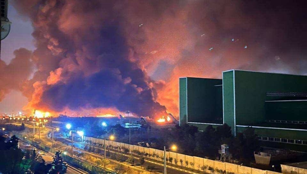 Σύμφωνα με οπτικό υλικό του Γαλλικού Πρακτορείου, στήλη καπνού και φλόγες ήταν ορατές στο διεθνές αεροδρόμιο Μεχραμπάντ της Τεχεράνης, που επλήγη. Σύμφωνα με το ιρανικό πρακτορείο ειδήσεων Tasnim, ακούστηκαν αρκετές εκρήξεις. Οι υποδομές του αεροδρομίου έχουν αποτελέσει ξανά στόχο τις τελευταίες ημέρες.