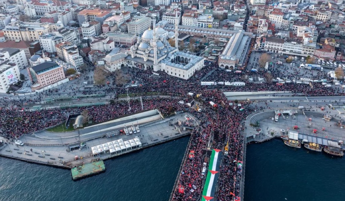 Δεκάδες χιλιάδες άνθρωποι συμμετείχαν χθες Πέμπτη στην Κωνσταντινούπολη σε πορεία και συγκέντρωση σε ένδειξη υποστήριξης στους Παλαιστινίους στη Λωρίδα της Γάζας, ανεμίζοντας παλαιστινιακές και τουρκικές σημαίες και καλώντας να τερματιστεί η βία στον παλαιστινιακό θύλακο που έχει υποστεί πελώρια καταστροφή από τον πόλεμο.