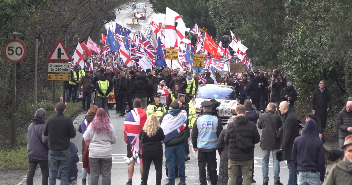 Εκατοντάδες διαδηλωτές συγκεντρώθηκαν σήμερα στο Κρόουμπορο, στη νότια Αγγλία, για να διαμαρτυρηθούν για τη στέγαση αιτούντων άσυλο σε μια πρώην στρατιωτική εγκατάσταση της πόλης αυτής.