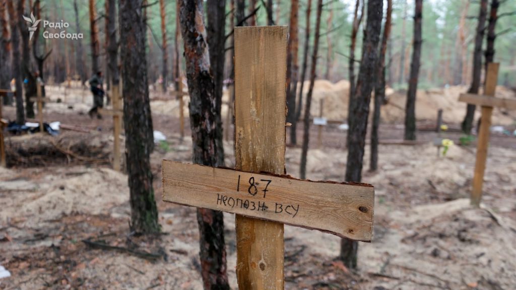 Αξιωματούχος της ουκρανικής αστυνομίας, ο Σερχίι Μποτβίνοφ, δήλωσε στο Sky News ότι ανακαλύφθηκε ένας χώρος ομαδικής ταφής περίπου 440 ανθρώπων στο Ιζιούμ. Ορισμένα από τα θύματα πυροβολήθηκαν, άλλα σκοτώθηκαν σε βομβαρδισμούς, υποστήριξε.