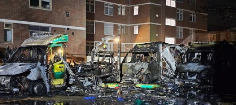 Στη Βρετανία, η αστυνομία συνέλαβε δύο άνδρες για καταστροφή τεσσάρων ασθενοφόρων· ερευνάται πιθανή ιρανική σύνδεση.
